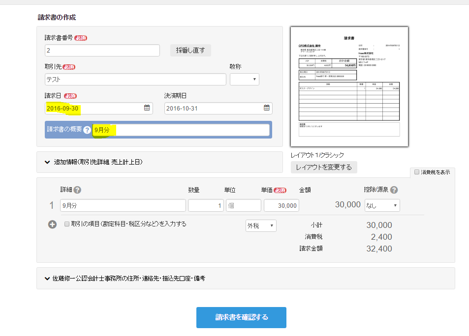 freee(フリー)の請求書の会計との連携方法について