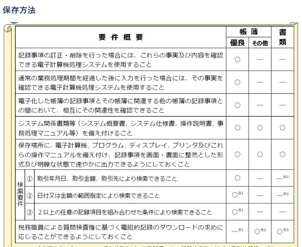 ただ、以下の「優良要件」を満たそうとしなければ、一般的な会計ソフトであれば、対応可能で、訂正・削除履歴が残らなくても、調査時に提出できれば電子データのまま保存OKです。