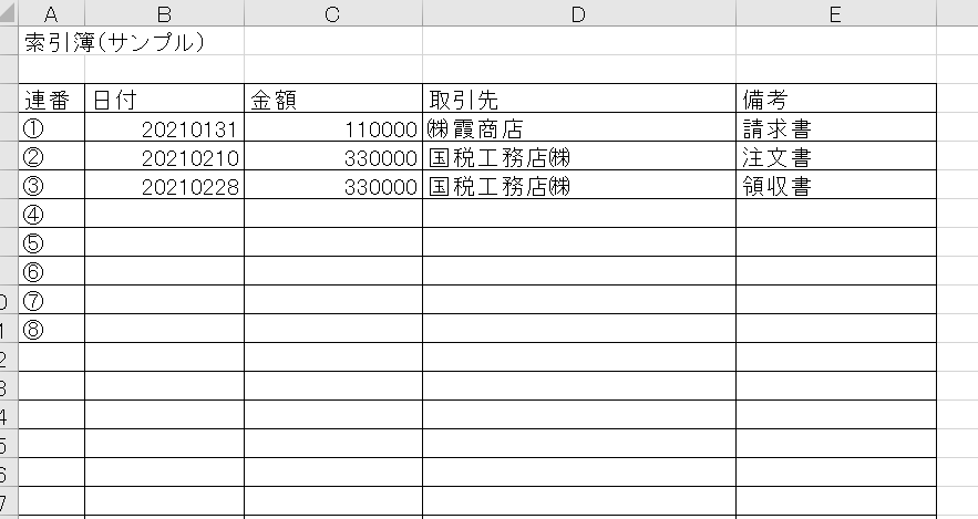 ・検索しやすいファイル名か索引簿を作成し管理する(2年前の売上が1000万未満の場合は不要)