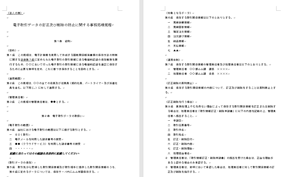 ①事務処理規定の制定、遵守(国税庁にひな形ありA4で3枚程度の分量)