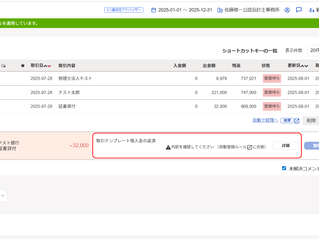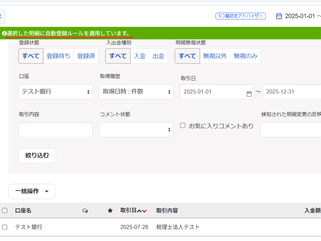 【手順4】明細の一覧の取引に自動登録ルールを適用させる