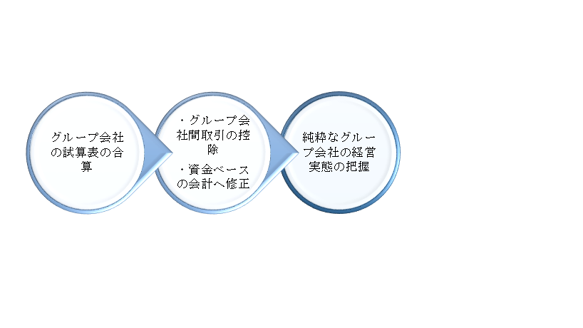 弊所では、グループ間の取引を除いたキャッシュフローベースでのグループ全体の経営実態の把握のためのサポートさせていただきます。