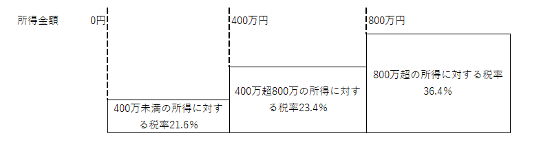 所得400万以下の部分に係る税率、所得400万~800万部分に係る税率、所得800万超の部分に係る税率で、それぞれ税率が異なります。