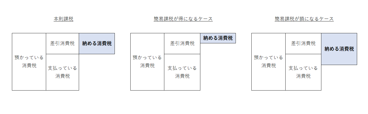 - 本則課税(原則課税)と簡易課税の消費税の計算方法