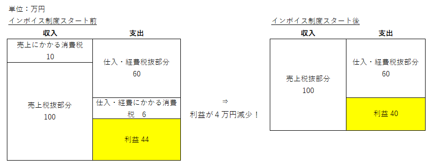 これまで免税事業者だった方がインボイスを発行すると消費税の納付が発生するので、利益が少なくなることは避けることはできません。