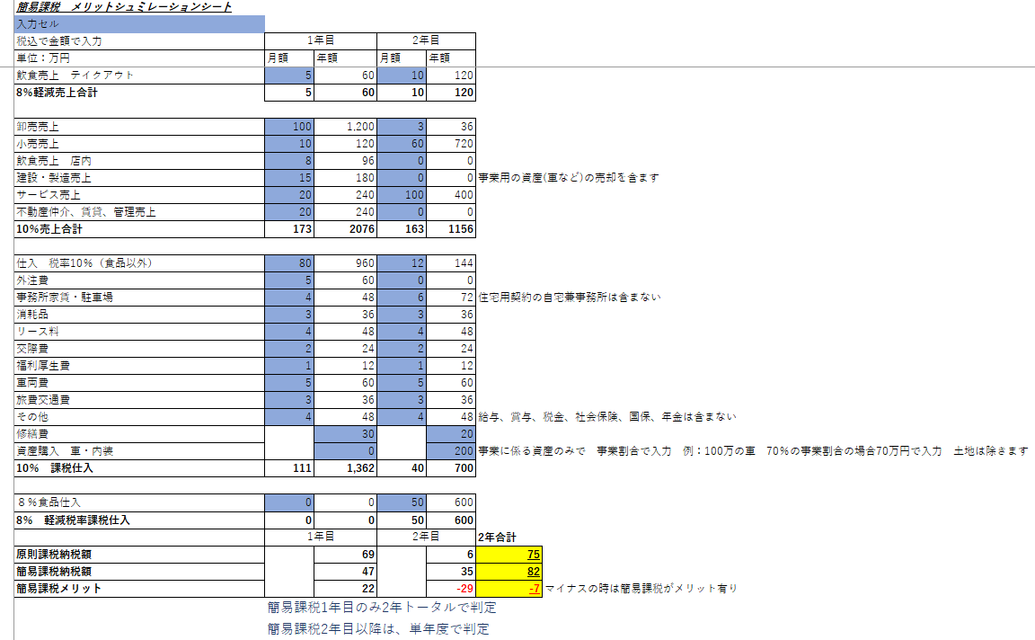 ここで、簡易課税のメリットを概算でシュミレーションできるシートをご準備しました。