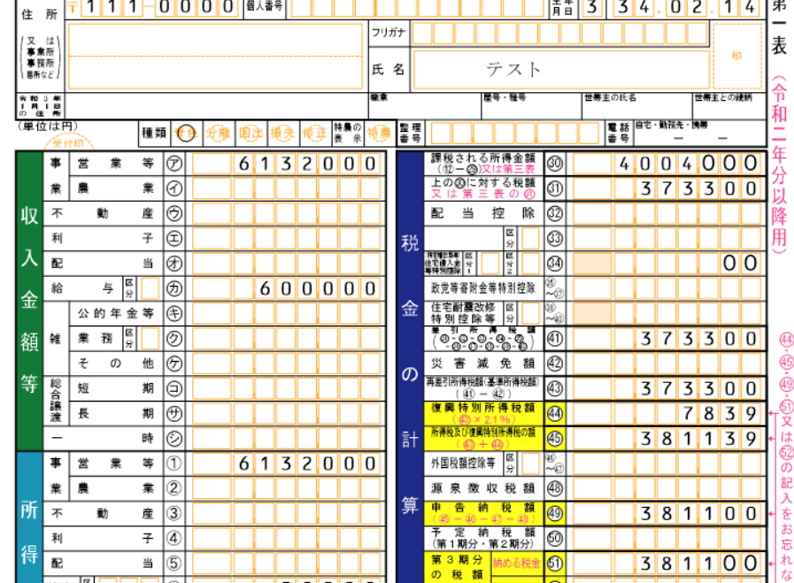 課税所得は「第一表」にあり、
