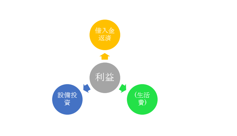 利益<借入金の返済、設備投資、生活費となる場合にはお金が足りなくなります。
