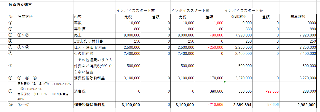 なぜなら、インボイスを発行し価格を上げた結果、客数が急減し、売上が大きく減少し、結果、赤字になってしまう事があり得るからです。