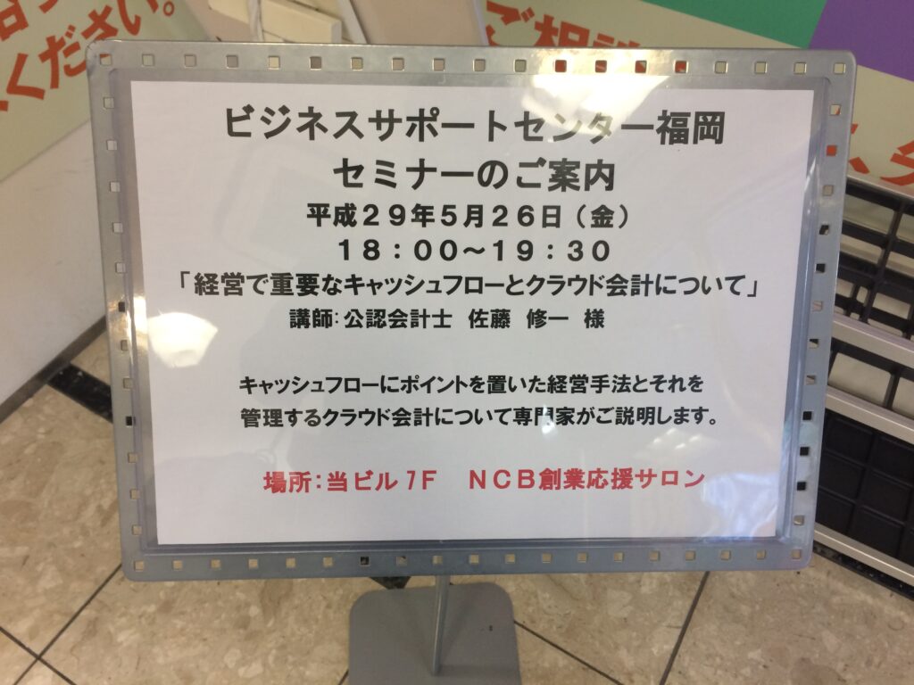 平成29年5月26日に西日本シティ銀行のNCB創業応援サロンで「経営に重要なキャッシュフロー会計とクラウド会計について」セミナーさせていただいました。