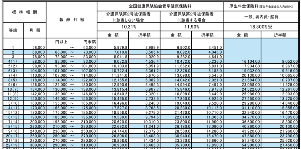 社会保険料は、実際の報酬額をもとに「等級表」に当てはめた標準報酬月額という金額に基づいて決まります。