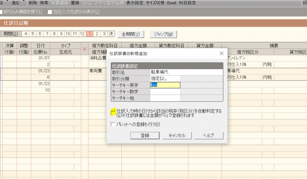 仕訳辞書の登録方法について