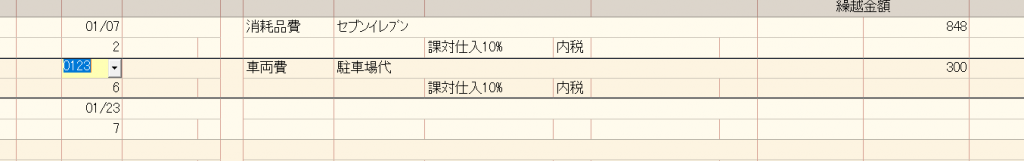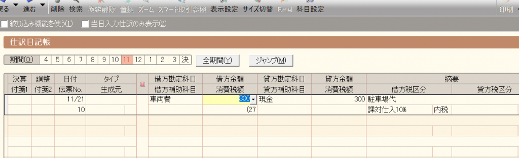 日付を入力し、11月21日の駐車場代300円の領収書を入力してみます。