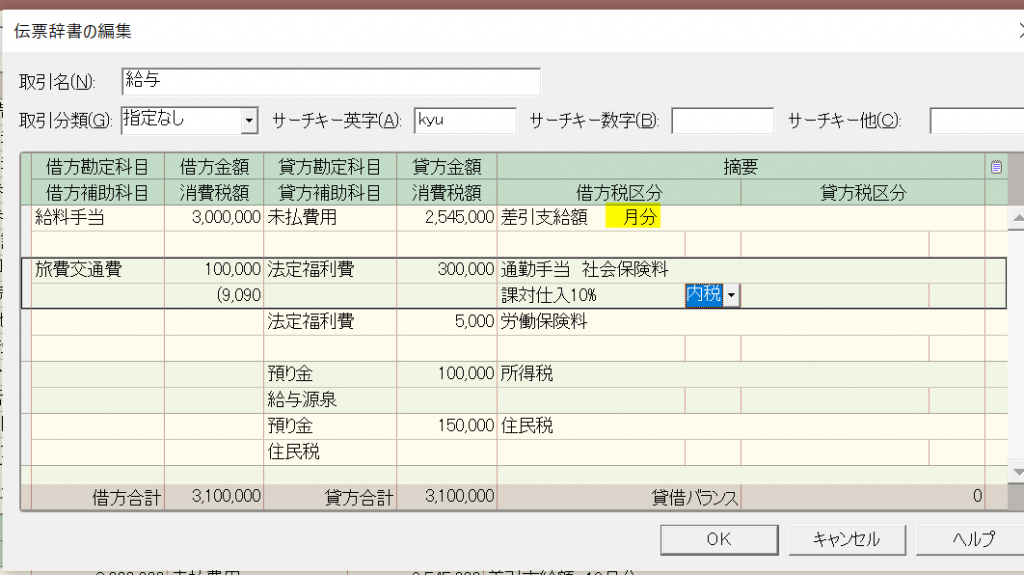 そして、ここでは、経理初心者の方にとって最も間違いやすい給与の仕訳を伝票辞書登録したい思います。